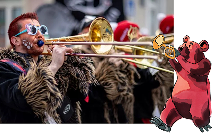Saturday, March 7: children's parade and ball, inauguration of the future Carnival Prince, followed by a grand ball and Guggens concert for adults (from 1:30 PM)