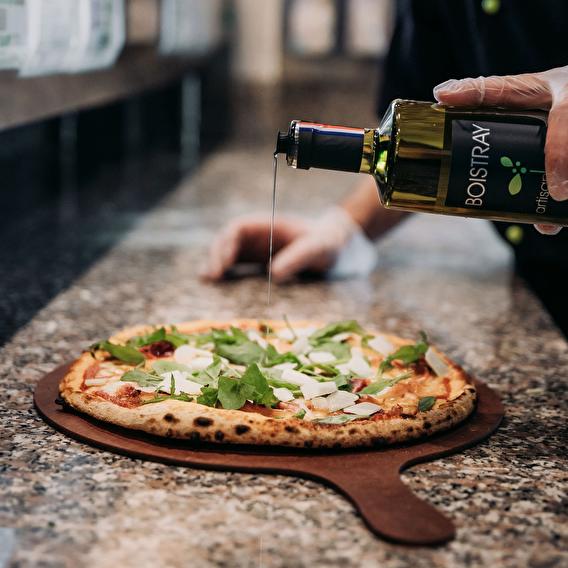 Tu pourras donc y retrouver des produits comme du jambon sec d'Ardèche, du piment d'espelette, du bleu du vercors (mais pas d'ananas hein !)... Parfait pour mixer le savoir-faire italien et la gastronomie française.