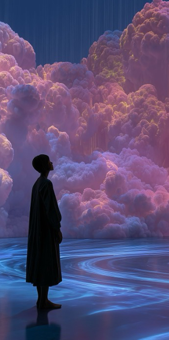 Un musée de 1 200 m² qui te transporte dans un autre monde. Dès que tu franchis la porte, tout change : les murs deviennent écrans, les sons réagissent à tes gestes, et les images se déplacent selon ta présence. Ici, l’art ne se regarde pas… il se vit.
