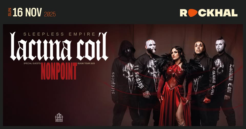 Lacuna Coil revient à Rockhal avec un nouvel album, "Sleepless Empire", mêlant grandioses orchestrations et riffs puissants. Le show inclura des invités spéciaux et sera accompagné du groupe Nonpoint, connaissant une présence scénique éclatante.