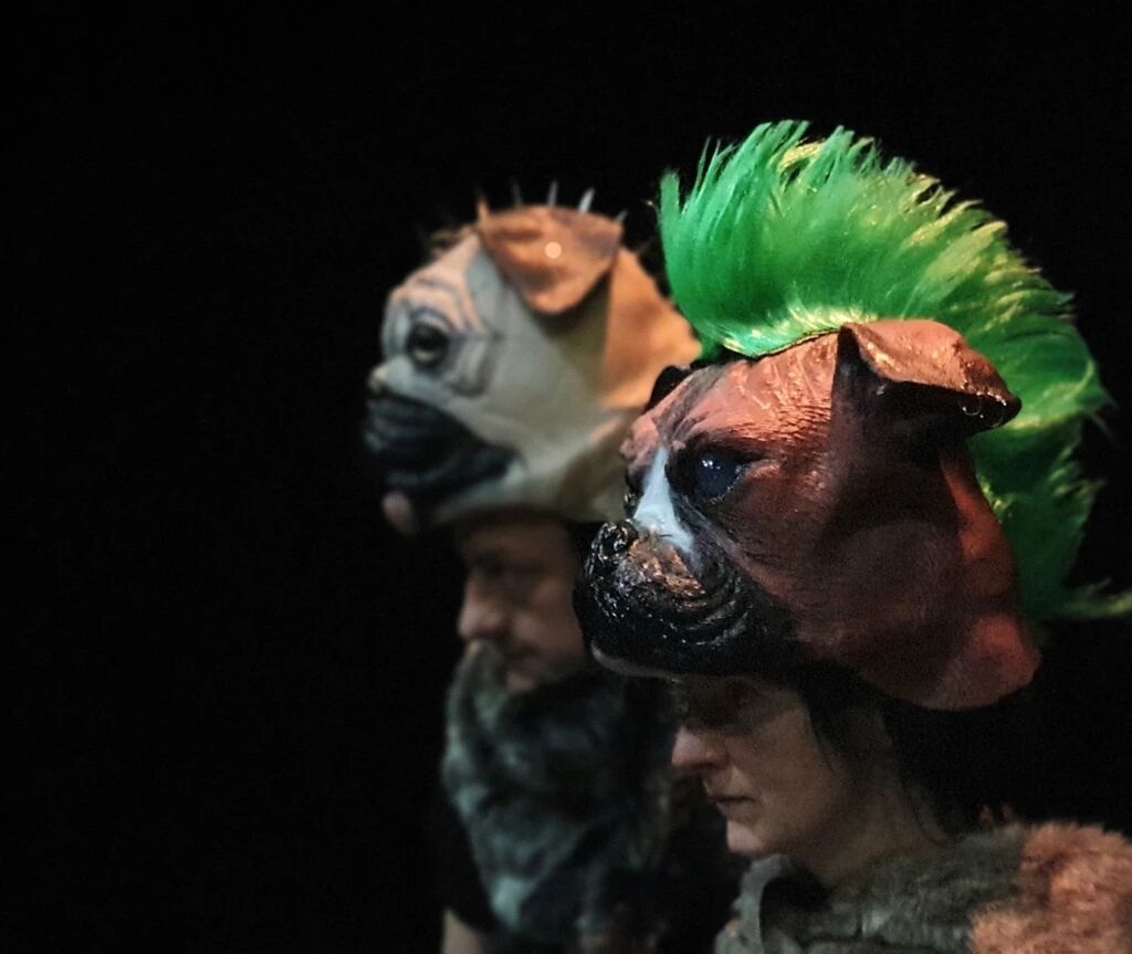 Adapté du roman de George Orwell, spectacle avec théâtre d'objets, masques et musique rock live.