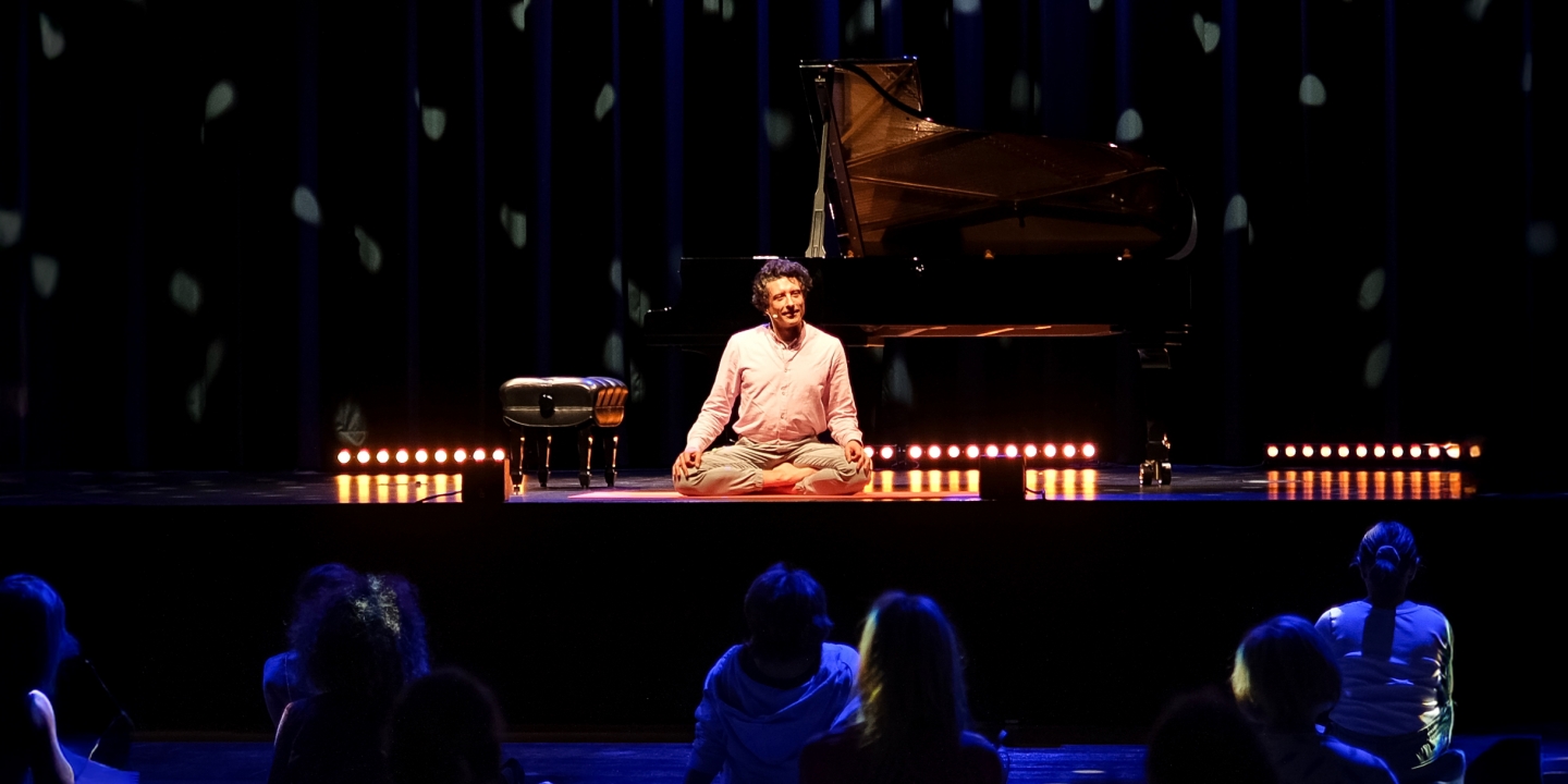 Concert de yoga avec Jnanadev David Ianni. Le pianiste, compositeur et professeur de yoga Jnanadev David Ianni associe dans ses concerts de yoga la beauté de la musique de piano à celle de la respiration et des mouvements doux du corps. Une expérience de concert unique pour adultes et jeunes à partir de 12 ans. Le yoga mène au calme et nous relie à notre conscience. Découvrez la force inspirante du yoga sans connaissances préalables ni souplesse physique. Rejoignez-nous pour une alliance de sons, de mouvements et de silence, pour expérimenter le bien-être physique et un calme intérieur profond.