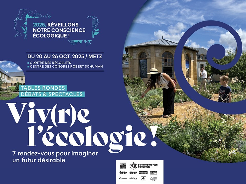 • 2025-10-20 18:30:00 2025-10-20 19:30:00 Europe/Paris Conférence - préservation et restauration de la biodiversité Table ronde 1 - Préservation et restauration de la biodiversité. Dans le cadre de l'événement Viv(r)e l'écologie ! - 7 rendez-vous pour imaginer un futur désirable. Animée par Patrice Costa (ancien journaliste grand reporter, Est Républicain) avec : - Jean-Luc Mériaul (président de l’AMBE, ancien directeur d’études à l’IEE). - Jacques Trouvilliez (ingénieur général des Ponts, des Eaux et des Forêts, secrétaire exécutif de l’AEWA, ONU). - Frédéric Pautz (directeur du Jardin Botanique J.M. Pelt de Nancy). - Antony Kohler (directeur scientifique du Parc Animalier de Ste-Croix). Cloître des Récollets, 1 Rue des Récollets, 57000 Metz, France Tourisme Metz