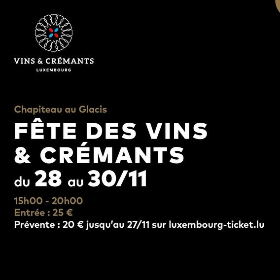 • 2025-11-28 15:00:00 2025-11-30 20:00:00 Europe/Paris Fête des Vins & Crémants 2025 Du 28 au 30 novembre 2025, des vignerons passionnés invitent les visiteurs à découvrir les richesses et la diversité de la région viticole luxembourgeoise. Environ 50 vignerons présenteront 500 vins et crémants, adaptés à tous les goûts. En plus des dégustations, le Food Village, dirigé par la boucherie Kirsch, proposera une sélection raffinée de spécialités luxembourgeoises. Les visiteurs auront ainsi l’occasion d’échanger avec les vignerons dans une ambiance conviviale et de passer leurs commandes avant les festivités de fin d’année. 14 Avenue de la Faiencerie, 1510 Limpertsberg, Luxembourg Vins & Crémants Luxembourg