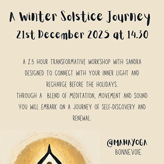 Rejoins Sandra pour un atelier transformateur pensé pour t’aider à te reconnecter à ta lumière intérieure. C’est ton moment pour recharger tes batteries avant Noël. À travers un mélange de méditation, de mouvements de yoga et de sonorités vibrantes, tu embarqueras pour un voyage de découverte de soi et de renouveau.