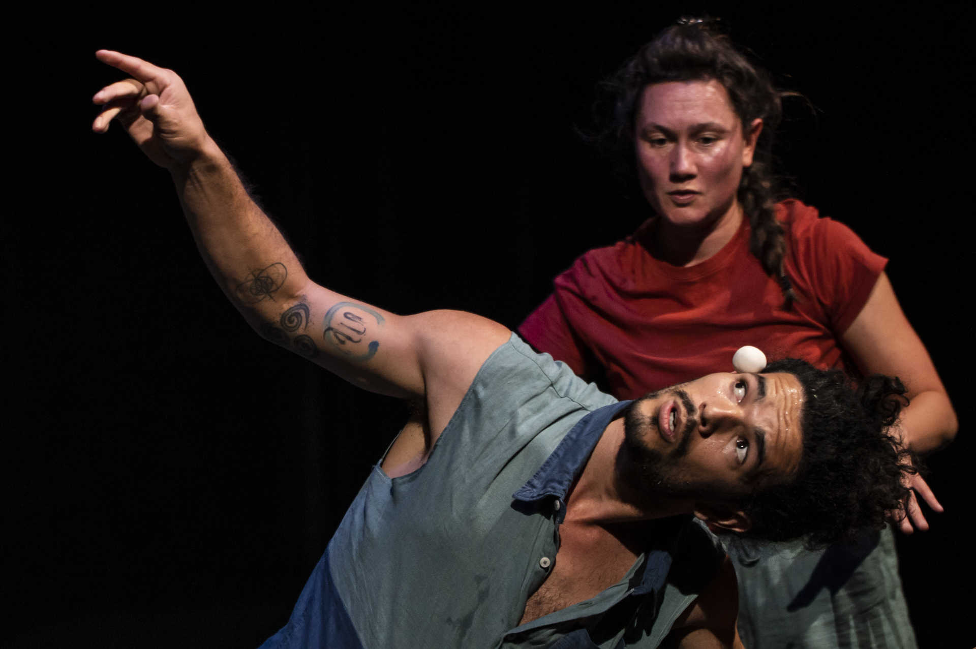Deux circassien·ne·s sont submergé·e·s de balles blanches, toutes légèrement différentes les unes des autres, insaisissables et surtout, beaucoup trop nombreuses. Le duo tente de les canaliser, mais les balles roulent bruyamment dans toutes les directions, vont se coller au plafond, et jaillissent même de leur bouche. Elles fusent, y compris autour des jambes du public, et sont tout bonnement incontrôlables! La compagnie Grensgeval, accompagnée de Circus Katoen, revient aux Rotondes pour explorer les formes et matières avec un joli message : sur scène comme dans la vie, c’est en laissant les balles filer entre nos doigts que les plus beaux accidents se produisent.