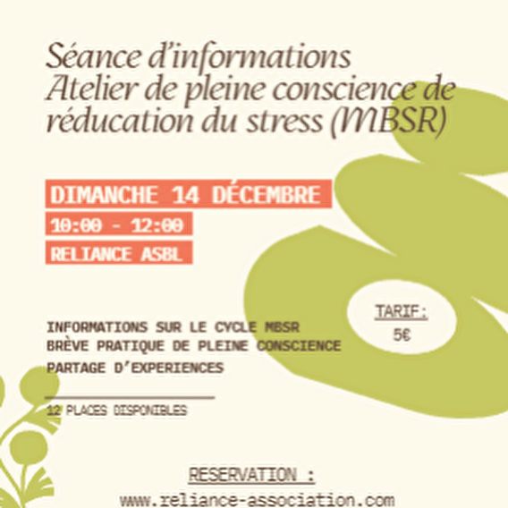 La participation à cette séance d'information est un préalable à l'inscription à un cycle "MBSR".