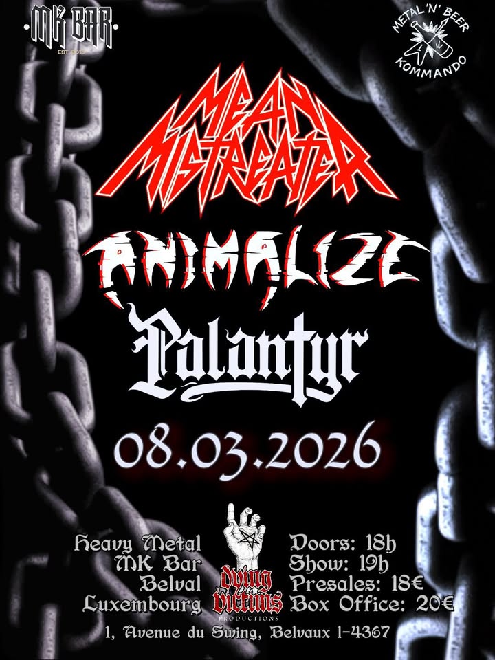 Animalize, Mean Mistreater et Palantyr se produiront au MK Bar pour une soirée heavy metal renversante. Préparez-vous à des riffs percutants et une ambiance électrisante. Ne manquez pas cet événement unique !