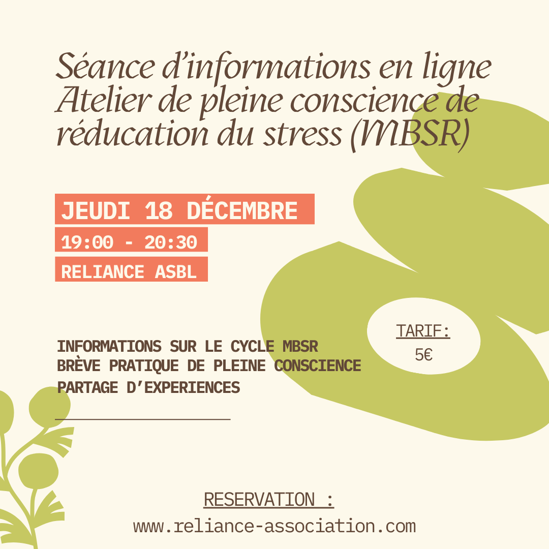 La participation à cette séance d'information est un préalable à l'inscription à un cycle "MBSR".