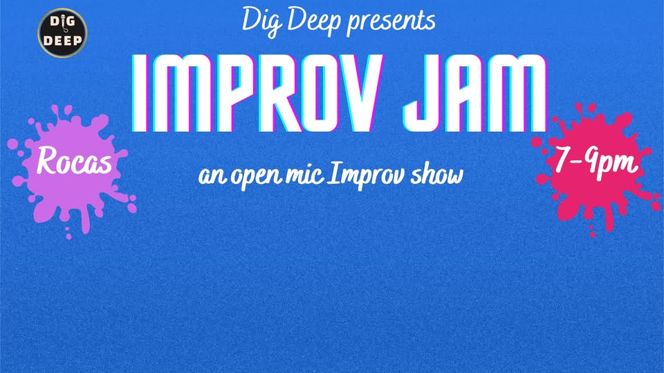 Rejoignez-nous pour un atelier d'improvisation Dig Deep. Une scène ouverte où vous pouvez monter sur scène et performer OU simplement vous détendre et être émerveillé par du théâtre improvisé extraordinaire !