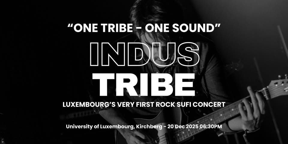 L'Indian Association Luxembourg (IAL) est fière d'être partenaire de « Une Tribu – Un Son », le tout premier concert live rock-sufi au Luxembourg, présenté par INDUS TRIBE. Cette expérience musicale puissante réunit des musiciens indiens, pakistanais et français, mélangeant des mélodies soufies profondes à l'énergie du rock desi — le tout sur une scène électrisante.