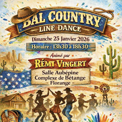 L’APE des Ptits Flo (école du Centre) organise un bal Country Line Dance animé par Rémy Vingert, à la salle Aubépine au complexe de Bétange. Venez danser, partager et passer un après-midi convivial !