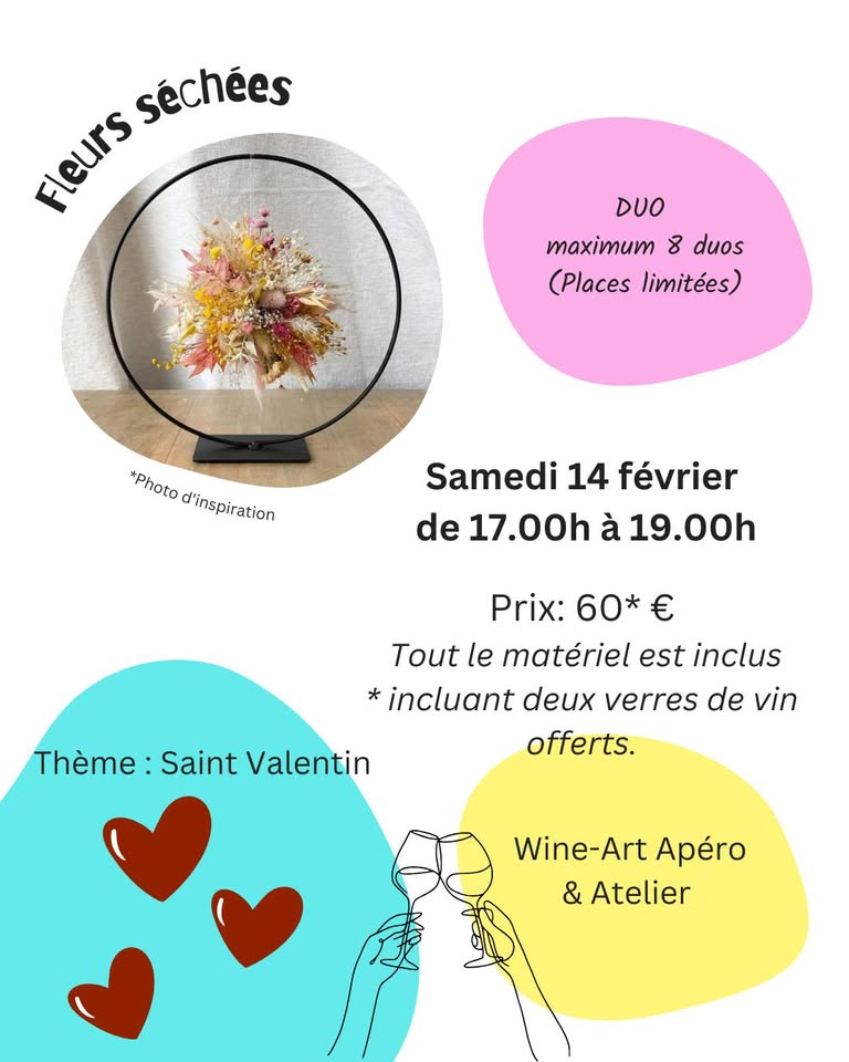 Surprenez votre partenaire avec un atelier Wine-Art autour des fleurs séchées.