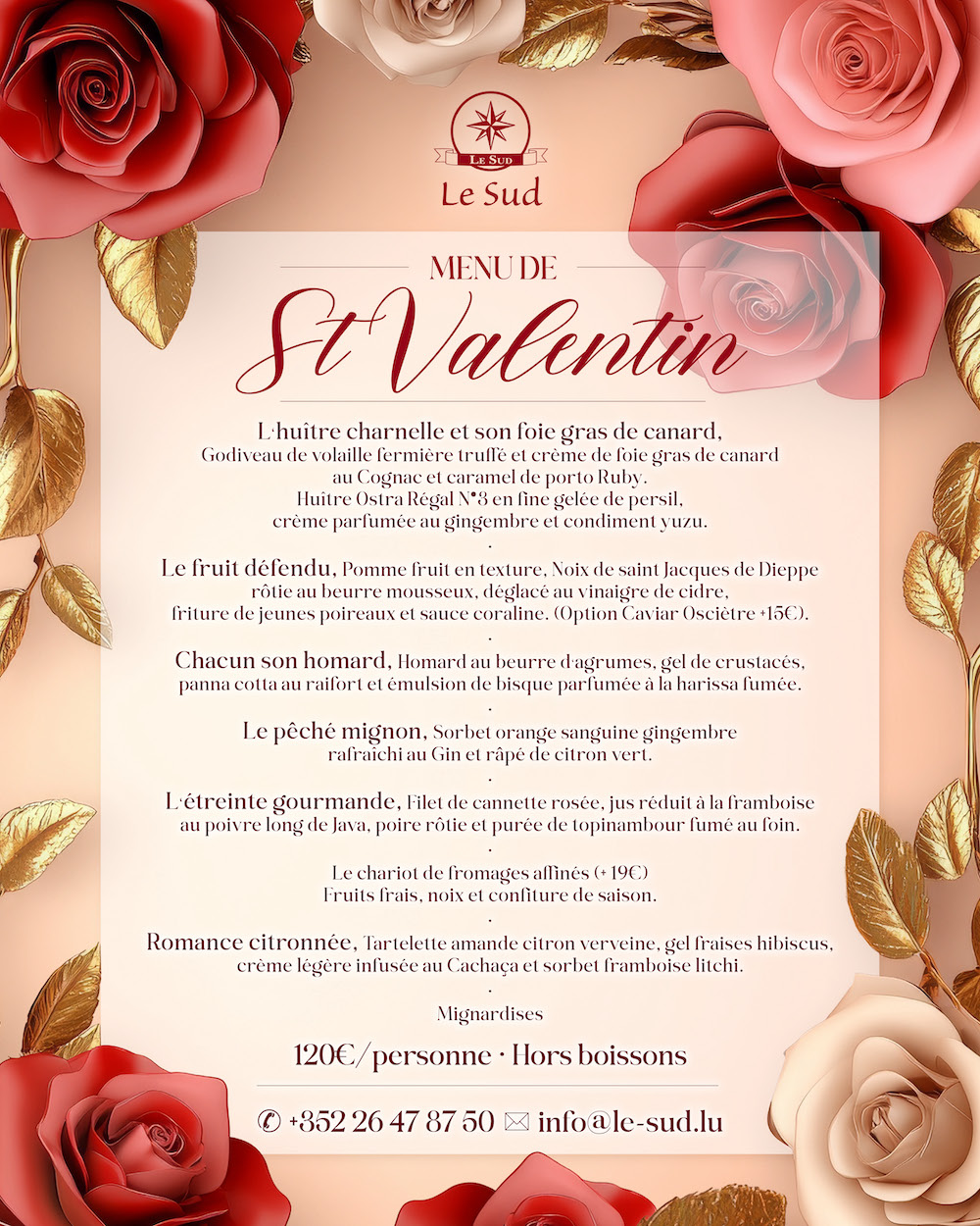 Pour célébrer la Saint Valentin, notre Chef vous propose un menu raffiné, pensé pour partager un moment gourmand et complice