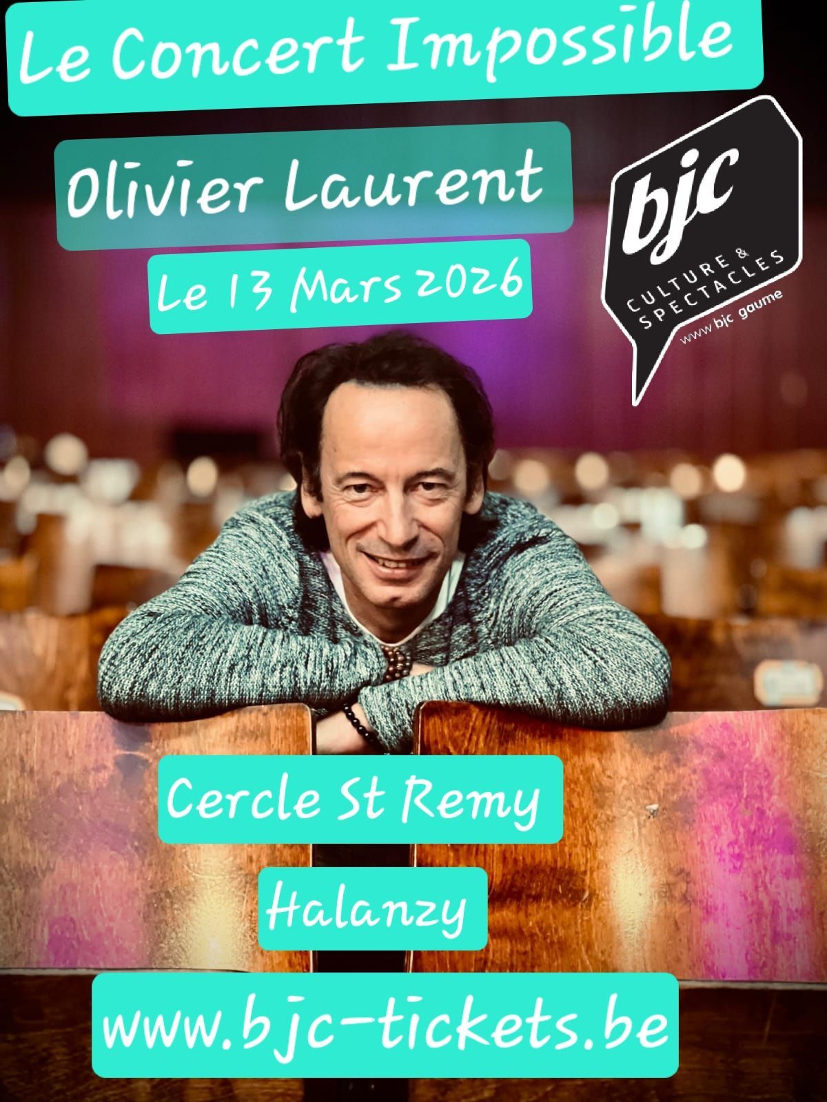 • 2026-03-13 2026-03-13 Europe/Paris Le concert impossible Dans un esprit festif et populaire, Olivier Laurent, le jongleur de voix, revient avec les meilleurs moments de ses plus beaux concerts, où l'artiste mélange subtilement l'humour, l'ambiance, l'émotion, une performance vocale absolue. Il vous a enchantés l'an passé avec Brel, il vous fera vous lever avec les reprises parfaites d'une multitude d'artistes. Comme vous le voyez sur la photo, il est ici chez lui. Rue Haute 22, 6791 Aubange, Belgique Ville d'Aubange