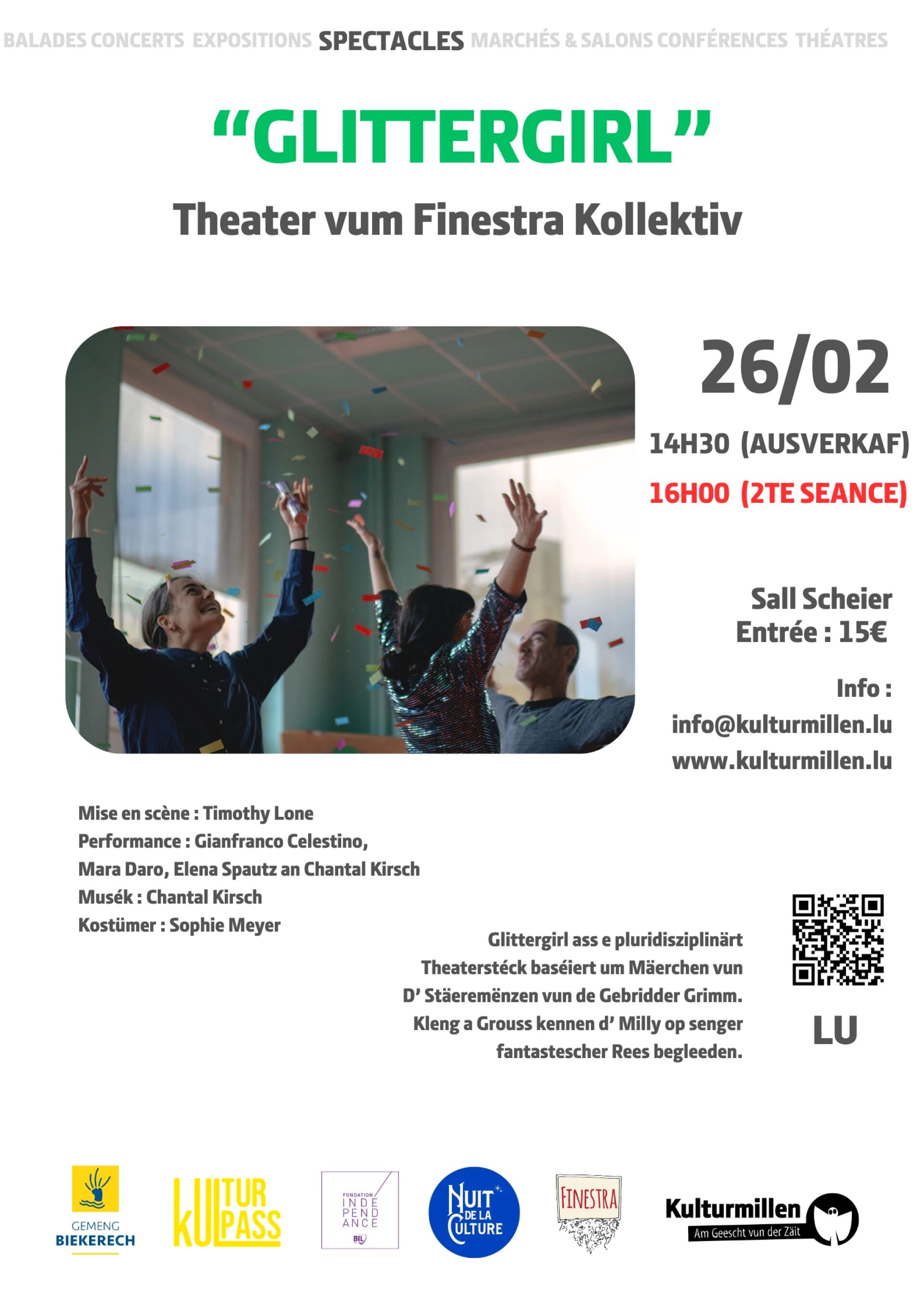 • 2026-02-26 14:30:00 2026-02-26 15:30:00 Europe/Paris Glittergirl Glittergirl - Théâtre 103 Huewelerstrooss, Beckerich, Luxembourg Commune de Beckerich / Gemeng Biekerech