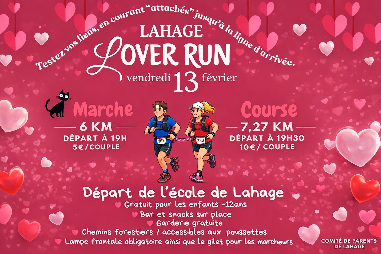 • 2026-02-13 19:30:00 2026-02-13 20:30:00 Europe/Paris Lahage lover run Course: 7,28 km - départ à 19h30 devant l'école Marche: 6 km - départ entre 19h et 20h devant l'école Tarif:Course: 10€/couple Marche: 5€/ couple Gratuit pour les enfants de moins de 12 ans. Tintigny, Belgique Tintigny