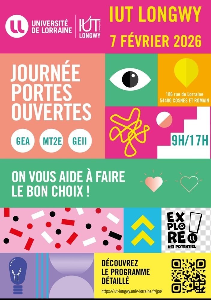 • 2026-02-07 09:00:00 2026-02-07 10:00:00 Europe/Paris Journée portes ouvertes à l'IUT Journée portes ouvertes à l'IUT Henri Poincaré IUT of Longwy, Rue de Lorraine, Cosnes-et-Romain, France Ville de Mondelange