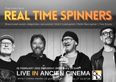 Real Time Spinners est un groupe luxembourgeois formé en 2007. Ils décrivent leur style comme du "psycho rock", une fusion d'éléments psychédéliques, funk et rock alternatif. Le groupe comprend un chanteur, un batteur, un guitariste et un bassiste. En intégrant des instruments tels que la guitare acoustique, le didgeridoo et les percussions, ils ont élaboré un style distinctif et reconnaissable. La variété et la richesse de la voix du chanteur ajoutent une dimension supplémentaire à leur musique. Leur musique mélange des influences prog, punk, rock et metal.