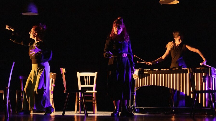 La porte d’un café s’ouvre, les lumières s’allument et une journée comme tant d’autres commence. Différents personnages entrent et sortent, se croisent et se donnent le relais pour raconter leurs histoires, mais aussi celles qui se cachent au fond de chacun.e de nous. Si la célèbre réplique « Play it again, Sam », qu’on attribue faussement au personnage de Rick dans Casablanca, a été le point de départ de cette création, les artistes-conteuses Luisa Bevilacqua et Betsy Dentzer ont su la transformer en histoire collective célébrant l’universalité de la nature humaine, grâce aussi à l’accompagnement rythmé et pertinent de la percussionniste Louisa Marxen.