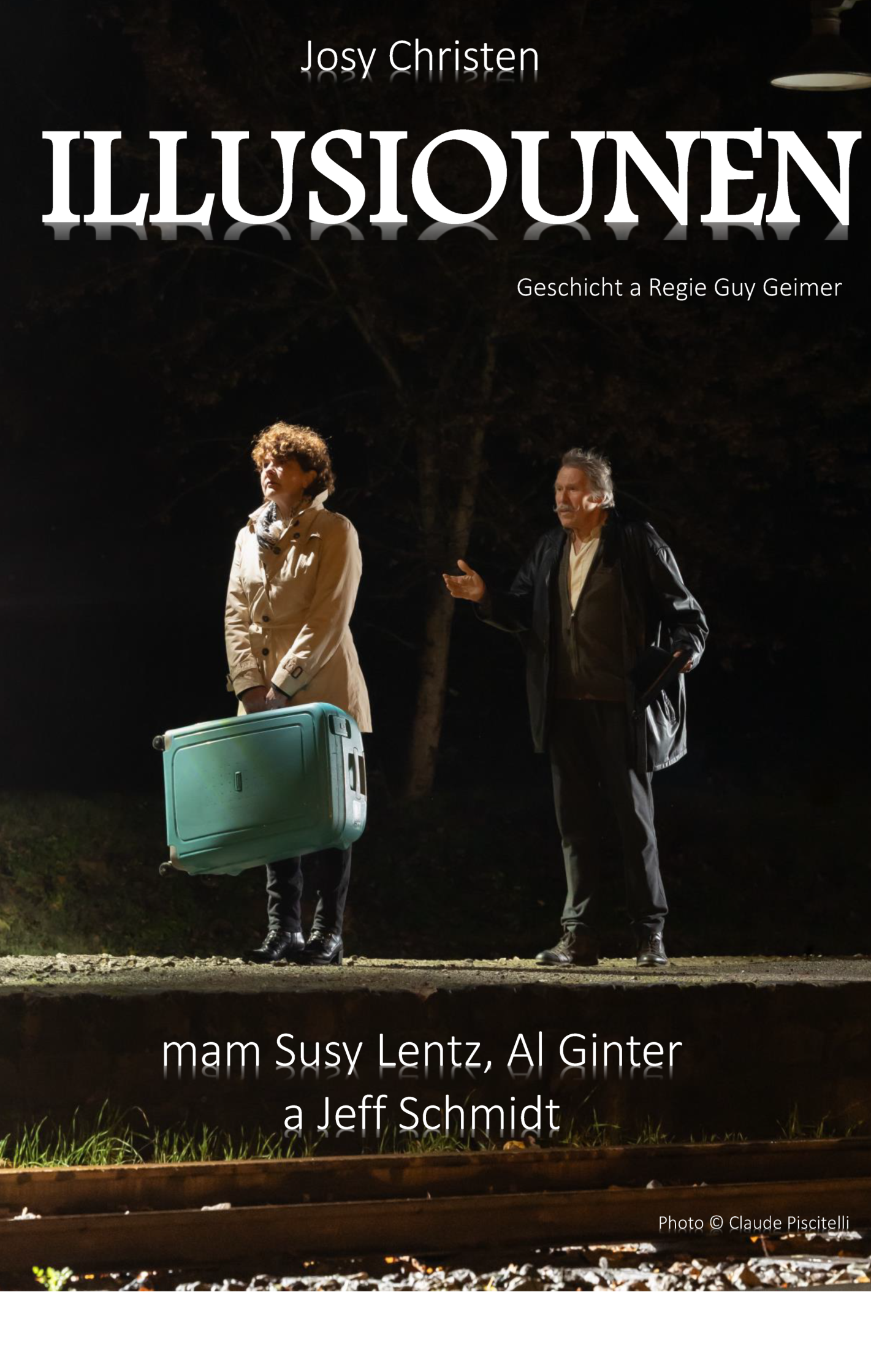 Avec Susy Lentz et Al Ginter. Accompagnement musical par Jeff Schmidt. Décor conçu par Marc Maas. Mise en scène par Guy Geimer. Une production du Bartrenger Kaméidi.