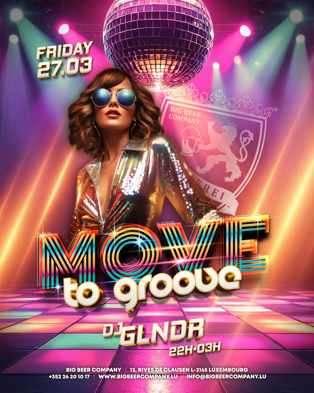 Move to Groove, c'est un revival disco survolté où l'esprit vintage rencontre un remix moderne. Au programme : basses funky, lumières scintillantes, hymnes intemporels et remixes inédits qui vous feront danser toute la nuit.