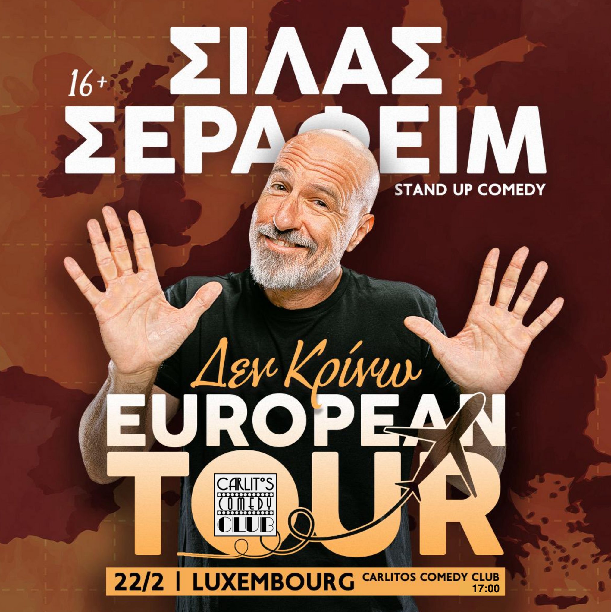 Depuis 1994, Silas Serafeim est considéré comme le pionnier de la scène stand-up comedy grecque. Il a été le premier comique à créer un line-up et à organiser des spectacles de stand-up en Grèce. Après plus de 31 années d'expérience, il présente aujourd'hui son nouveau spectacle intitulé «DEN KRINO», abordant des thèmes tels que la liberté d'expression, le woke, la diversité, l'appropriation culturelle, la cancel culture, l'islamophobie, le choix, le républicanisme, le trap, la pauvreté et bien d'autres sujets sociaux et politiques, toujours avec humour.