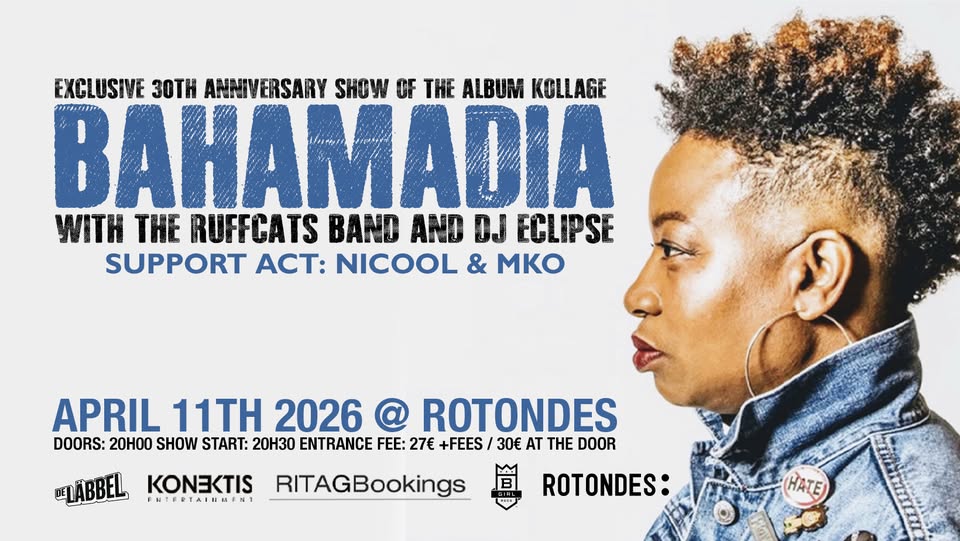 Bahamadia célèbre le 30e anniversaire de son album emblématique Kollage à la Rotonde. Elle sera accompagnée du groupe The RuffCats et de DJ Eclipse pour assurer une ambiance du début à la fin. La soirée sera ouverte par Nicool & MKO, pour une nuit inoubliable.