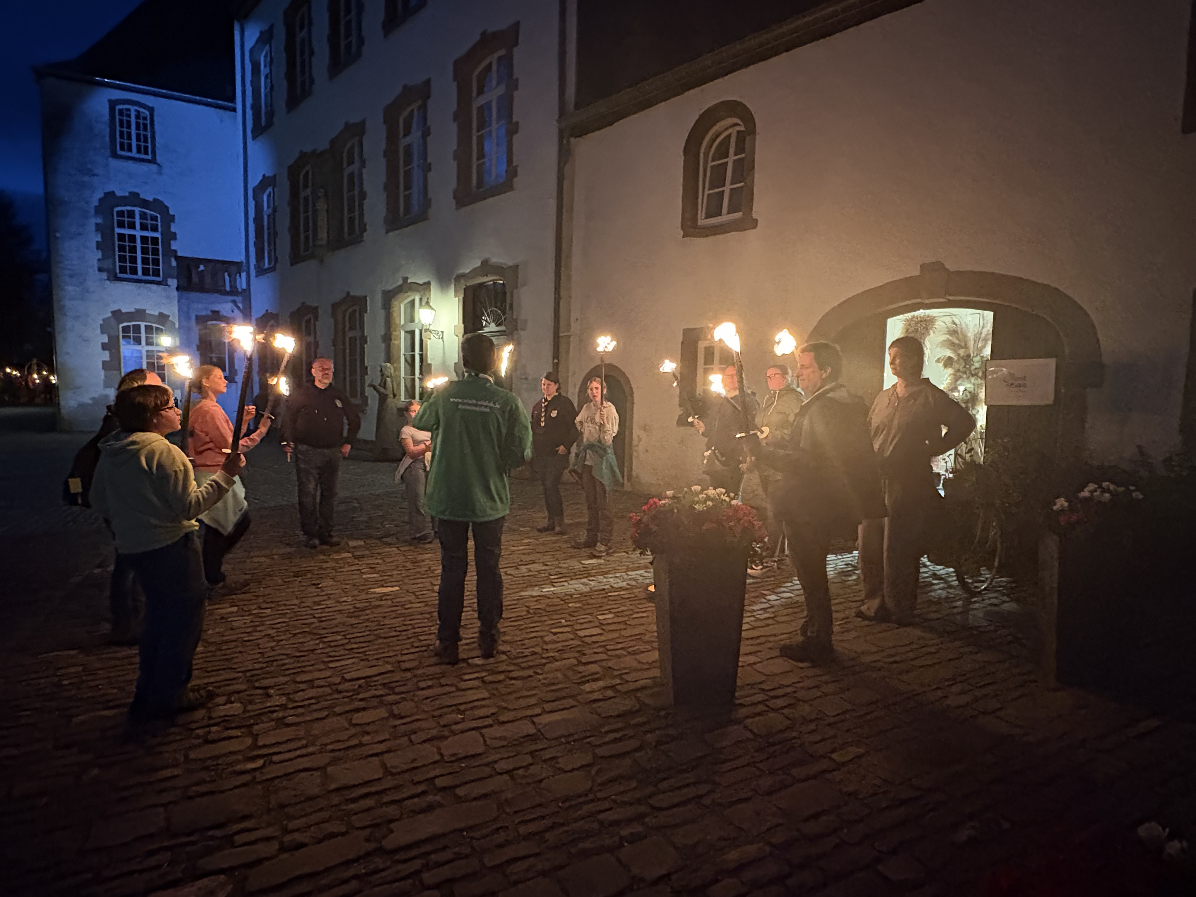 La visite guidée aux flambeaux est une activité estivale permettant de découvrir la ville de Wiltz et son château de manière originale.