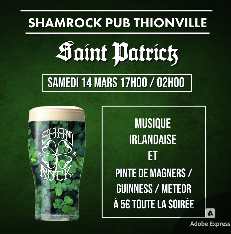 Enfile un vêtement vert et viens fêter la Saint-Patrick au Shamrock Pub Thionville !