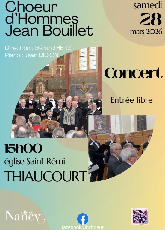 Le Chœur d'hommes Jean Bouillet de Nancy vous invite pour un concert exceptionnel à l'église Saint Rémi de Thiaucourt-Regniéville.