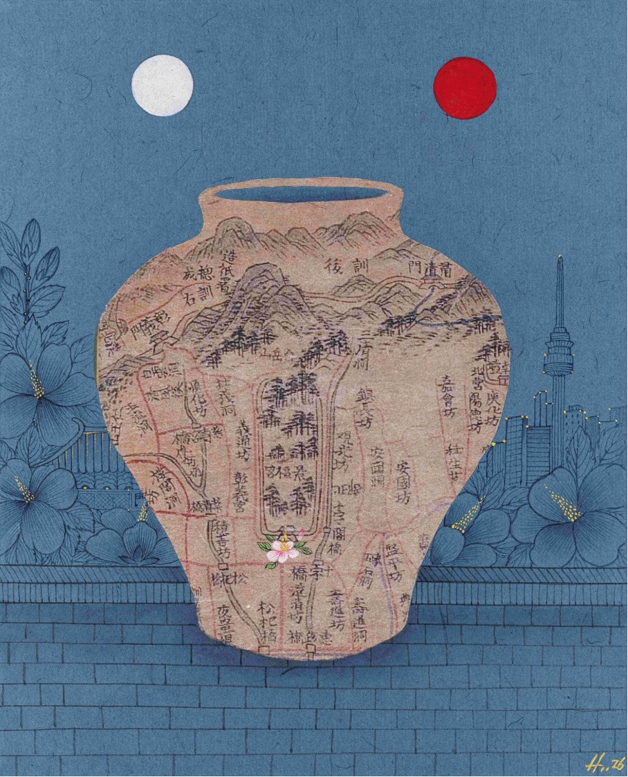 L'artiste Kim-Kyong Hee présente l'esprit contemporain du Moon Jar, symbole d'harmonie et de plénitude de la dynastie Joseon. Son œuvre s'inspire de l'esthétique du Minhwa (art populaire coréen) et la réinvente avec modernité. Kim explore le « gi » - le récipient - comme métaphore du cœur et de l'âme : un espace qui recueille la lumière, les émotions et la mémoire. Elle a réalisé de nombreuses expositions personnelles et collectives, dont "Super Moon Jar in My Hands" (2023) et "Movement" (2025). Ses œuvres sont présentes dans plusieurs collections institutionnelles, telles que le Musée de la Médecine Coréenne et le Centre Culturel Coréen d'Égypte.