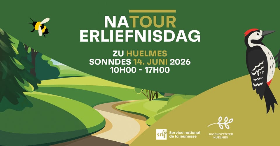 Le dimanche 14 juin 2026 aura lieu à Huelmes la 3e édition du NaTOURerliefnisdag. Profitez d'un programme riche avec de superbes ateliers et stations autour de Huelmes. Parmi les activités proposées : patauger dans l'étang, construire une roue à eau, faire des nœuds avec des cordes ou allumer un feu. Que vous soyez petits ou grands, il y a beaucoup à découvrir.