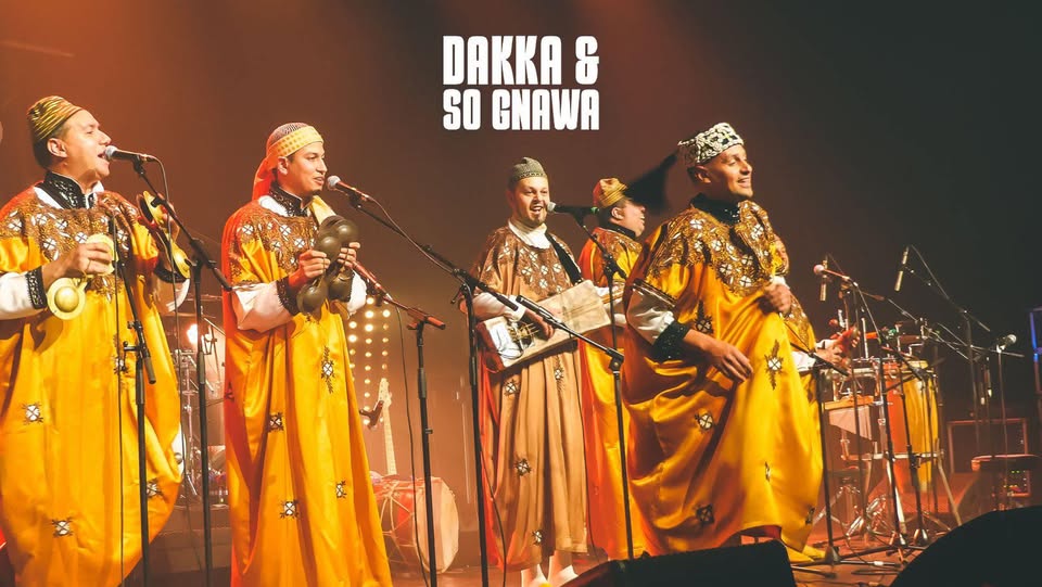 Dakka & So Gnawa est connu pour son répertoire festif, qui mélange des éléments traditionnels et d’improvisation en interaction avec le public. Le groupe se distingue également par ses tenues traditionnelles, qui ajoutent une élégante touche visuelle à leur performance scénique. Le public est souvent invité à participer à la danse, créant une ambiance chaleureuse et festive pour tous les participants. Dakka & So Gnawa a gagné en popularité au fil des ans et est devenu un groupe incontournable dans la scène musicale « world music ». Leur passion pour la musique et leur engagement envers la préservation de la culture musicale du Maroc, en font un groupe à ne pas manquer.