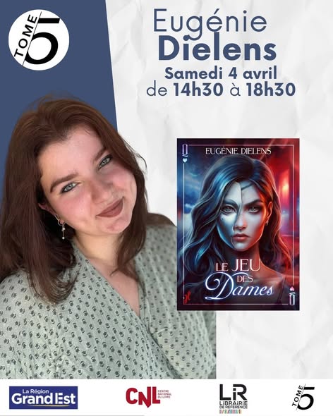 Nous avons le plaisir d'accueillir Eugénie Dielens pour une séance de dédicaces. À cette occasion, elle présentera son nouveau roman "Le jeu des dames", une romance où les femmes sont au pouvoir et où un journaliste infiltré va se confronter à une reine sombre, mystérieuse et vengeresse.