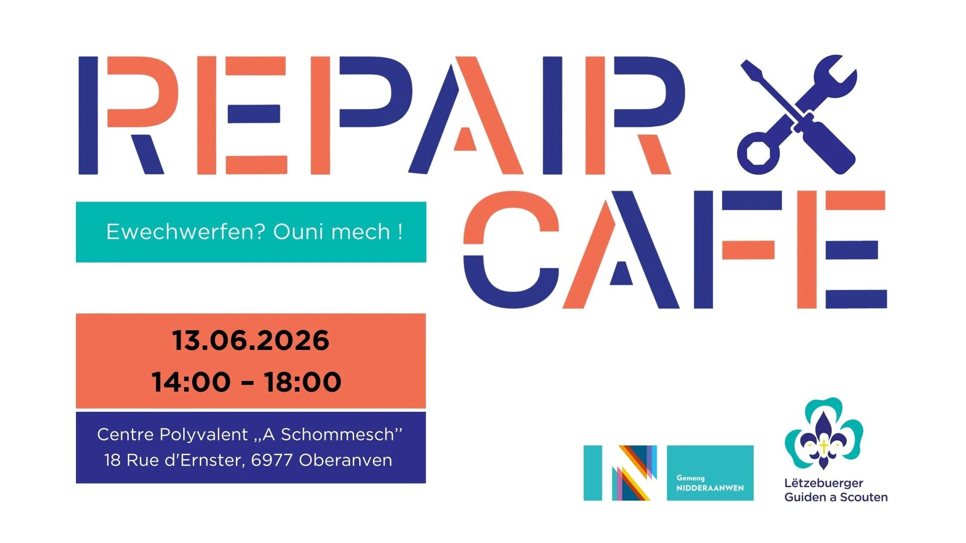 Vous avez un grille-pain en panne ? Une perceuse qui ne fonctionne plus ? Une hache dont le manche est cassé ? Un bouton arraché de votre chemise ? Ici, au Repair Café, nous regardons ensemble comment réparer les objets. Des outils et des personnes expérimentées sont à votre disposition. Autour d’un café et d’un gâteau, nous nous inspirons mutuellement et échangeons des conseils.