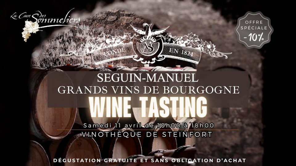 • 2026-04-11 09:00:00 2026-04-11 17:00:00 Europe/Paris Dégustation des grands vins de Bourgogne du domaine Seguin-Manuel La Cave des Sommeliers vous invite à une dégustation exceptionnelle des grands vins de Bourgogne du Domaine Seguin Manuel. À l'honneur : le Corton Rognet Grand Cru 2021, un vin d’exception incarnant la finesse et la puissance des grands terroirs de Bourgogne. Venez découvrir et apprécier ces grands crus lors de ce moment convivial. À propos du Domaine Seguin Manuel : Fondé au XIXe siècle et aujourd'hui installé à Beaune, le domaine perpétue avec passion l'excellence des vins de Bourgogne, privilégiant une viticulture respectueuse et des vinifications soignées. Sous la direction de Thibaut Marion, l'identité de chaque terroir est révélée avec précision et élégance. 1 Route d'Arlon, L-8410 Steinfort, Luxembourg La Cave des Sommeliers