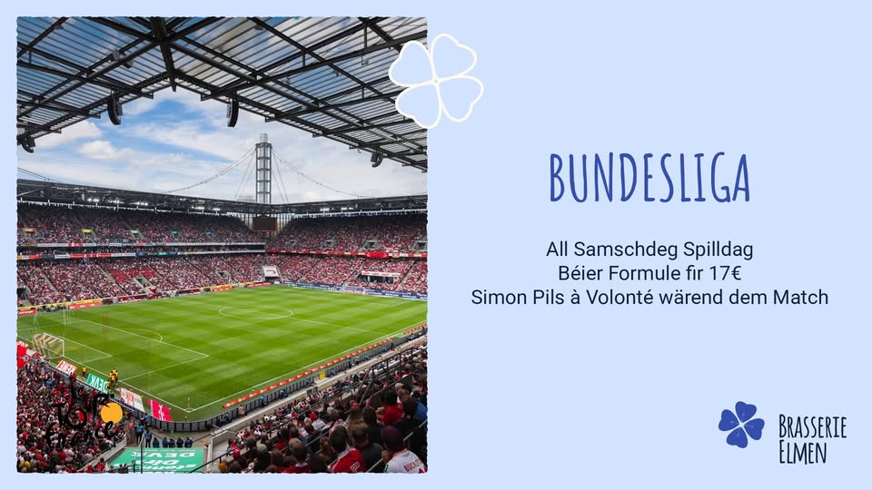 Chaque samedi de match, venez regarder les rencontres de la Bundesliga à la Brasserie Elmen.