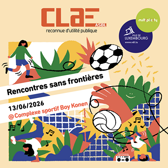• 2026-06-13 2026-05-30 Europe/Paris C'est le moment t'inscrire ta team ! Participe à une journée de sports, de culture et de communauté lors de l'événement Rencontres sans Frontières ! Ce rassemblement annuel a pour but de favoriser l’intégration et le vivre ensemble des personnes de toutes les nationalités différentes présentes sur le territoire luxembourgeois. AU PROGRAMME (inscription obligatoire) Un tournoi de football Un tournoi de beach-volley UNE JOURNÉE POUR TOUTE LA FAMILLE Une ribambelle d’activités t’attend aussi tout au long de la journée : un jeu de fléchettes géant, du mini-golf, un parcours pour les enfants et un terrain pour les mini champions en devenir mais AUSSI un match inclusif avec l’équipe Bananenflanke Luxemburg. Entre deux activités, tu pourras te laisser tenter par quelques stands culinaires : vélosmoothies à préparer toi-même, glaces et spécialités venues des quatre coins du monde ! Et pour finir la journée en musique, plusieurs performances viendront rythmer la soirée jusqu’à 21h, avec un open mic ouvert à toutes et tous ! 3 rue des Sports Luxembourg, Luxembourg Ville de Luxembourg